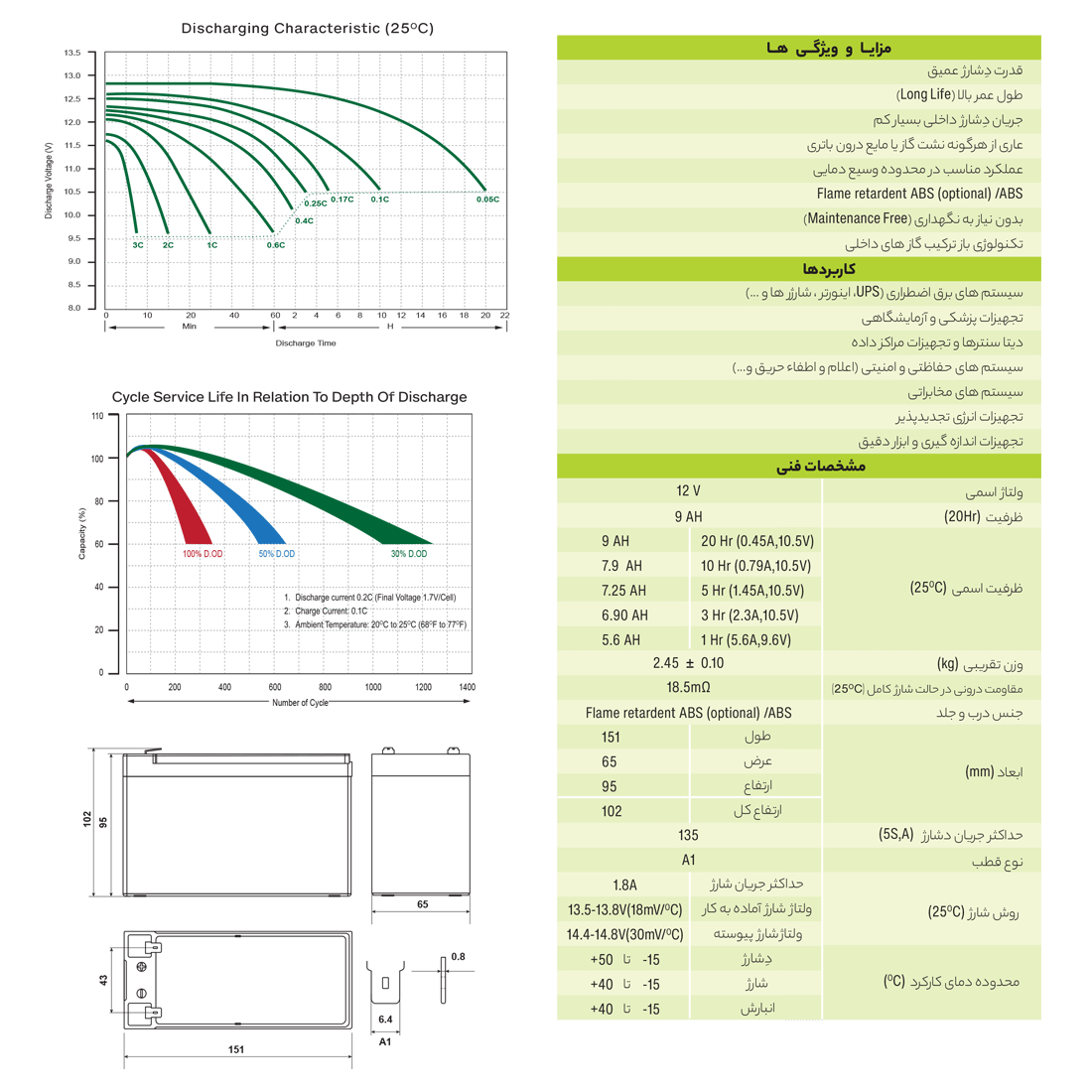 باتری یو پی اس ضد اشتعال 12 ولت 9 آمپر یوفو